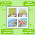 Puzzle są lekkie, trwałe i łatwe w użytku dla małych, dziecięcych rączek. Mechanizm w stylu puzzli pozwala na łatwe przyklejanie i odklejanie wzorów z obrazków. Dla najlepszych efektów rekomendujemy wspólną zabawę z naszymi pociechami!