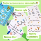 Zestaw został zaprojektowany z myślą o dzieciach w wieku od 3 do 6 lat. Karty mają różne stopnie trudności – od bardzo prostych linii dla maluchów, po naukę liter i cyfr dla dzieci przygotowujących się do szkoły.